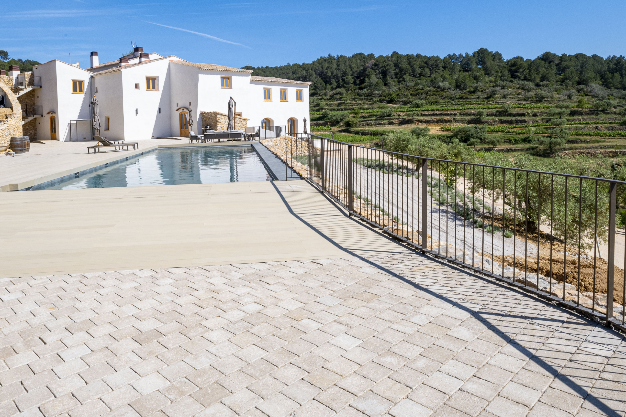 Hotel Can Alemany | Pavimento del contorno de la piscina: Llosa Vulcano® Pool – Arena | Camino a la piscina: Tegula® – Arena