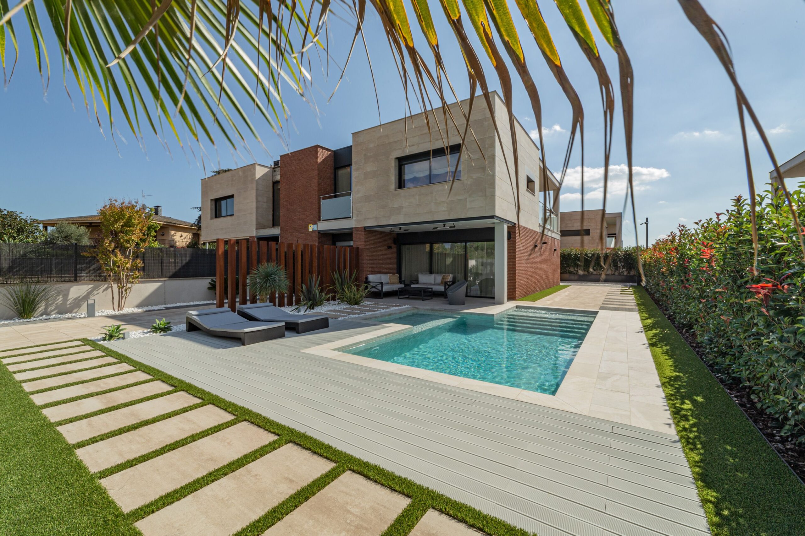 El Listomat® está concebido y diseñado para encajar en cualquier ambiente al aire libre para mejorarlo y darle exclusividad. Listomat® | Color. Terra gris | 200 x 12,5 x 3 cm | Casa particular, Girona. El Listomat® está compuesto por un conglomerado pétreo elaborado con composite pétreo Litofiber®, que contiene alta proporción de fibras compatibles. Por ello la pieza es de alta resistencia a los agentes atmosféricos y químicos, lo que le permite mantener las mismas propiedades físicas y mecánicas del inicio, obviando así los procesos de mantenimiento. Su modularidad, sin deformaciones ni elongaciones facilita la programación de la instalación. El composite pétreo Litofiber® es un material noble, que nos garantiza su estabilidad en el tiempo ante la variabilidad de las condiciones climatológicas (que en muchos países pueden llegar a ser extremas y opuestas).