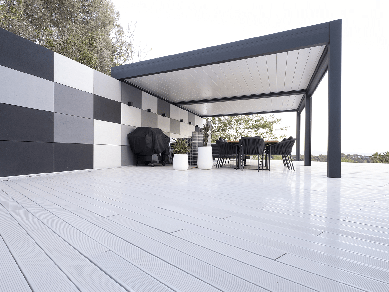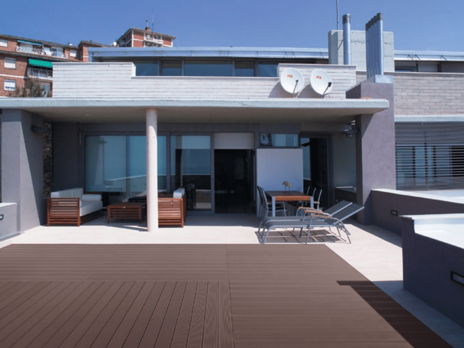 Listomat® es una solución de pavimentación y revestimiento de gran valor estético y calidad. Su diseño de líneas infinitas aporta estilo al espacio, además nos proporciona versatilidad gracias a su fácil colocación y sobre todo hay que resaltar que es un listón que no necesita mantenimiento. El sistema de construcción del pavimento con listones Listomat® es una solución ideal para caminos de exterior, jardines, rampas, terrazas, piscinas, áreas de playa y marítimas, como embarcaderos y muelles… También se puede instalar como fachada exterior de edificios industriales y residenciales, centros comerciales, etc. Listomat® | Color. Snow white | 200 x 12,5 x 3 cm | Terraza casa particular, Barcelona.