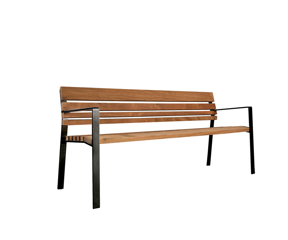 Es un banco clásico de líneas elegantes, elaborado con madera tropical y acero que se presenta como un elemento neutral preparado para casi todo tipo de entorno público. Ofrece un instante de reposo y calma, combinando comodidad y versatilidad.